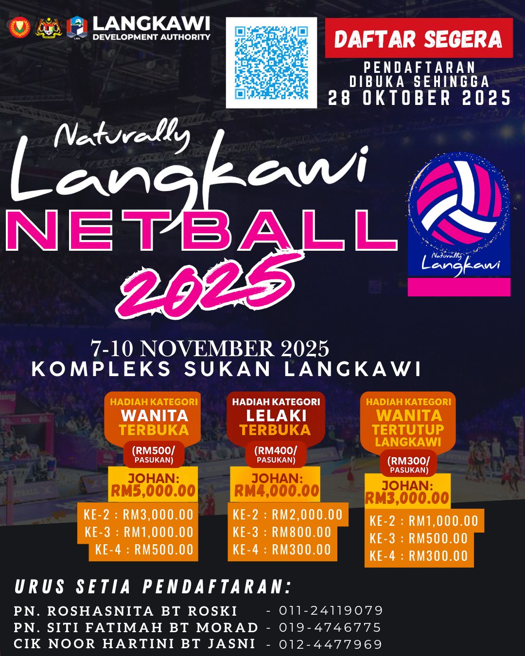 Gather your team, train hard, and get ready to make history in Langkawi! Let’s celebrate the spirit of netball together—Naturally Active, Naturally Competitive, Naturally Langkawi!